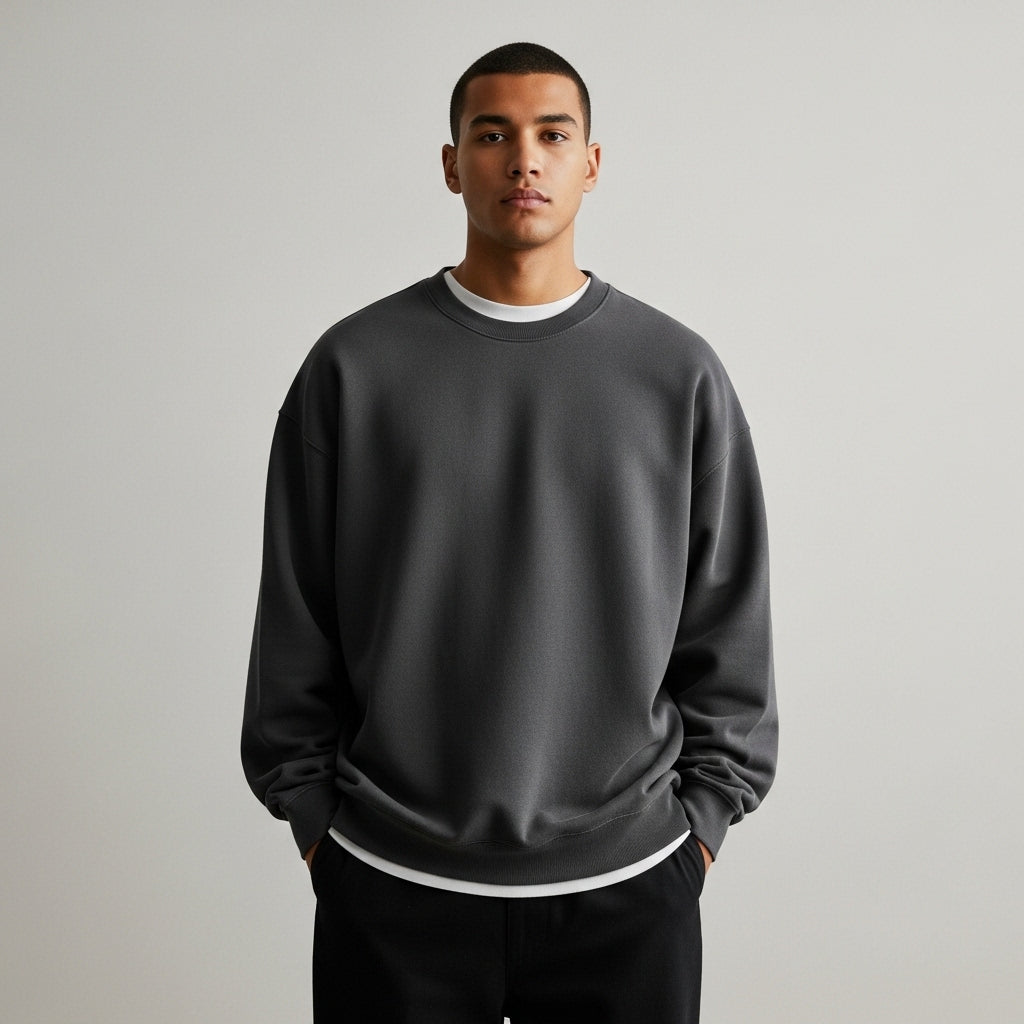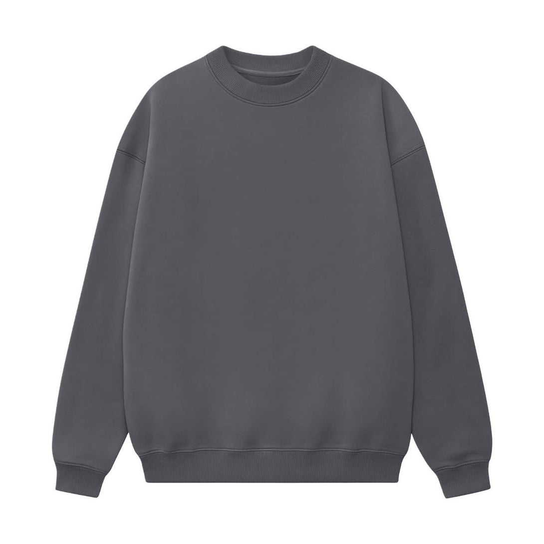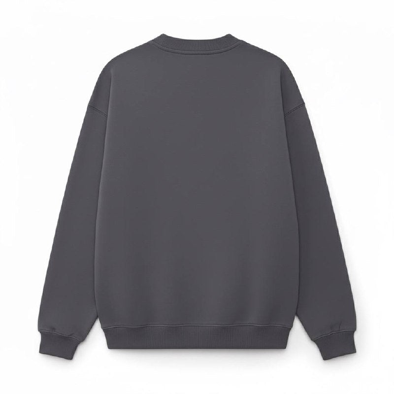 Dark Grey oversized sweatshirt made from high-quality Milton mixed fabric. The outer layer is 100% cotton, providing a soft and smooth texture, while the inner layer is a blend of 75% cotton and 25% polyester for added warmth and durability. Designed with a relaxed, oversized fit for ultimate comfort and a modern casual look.