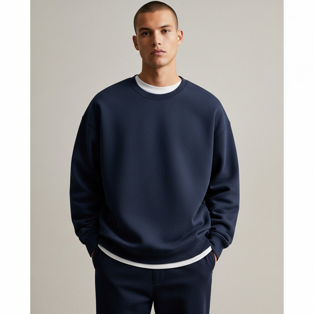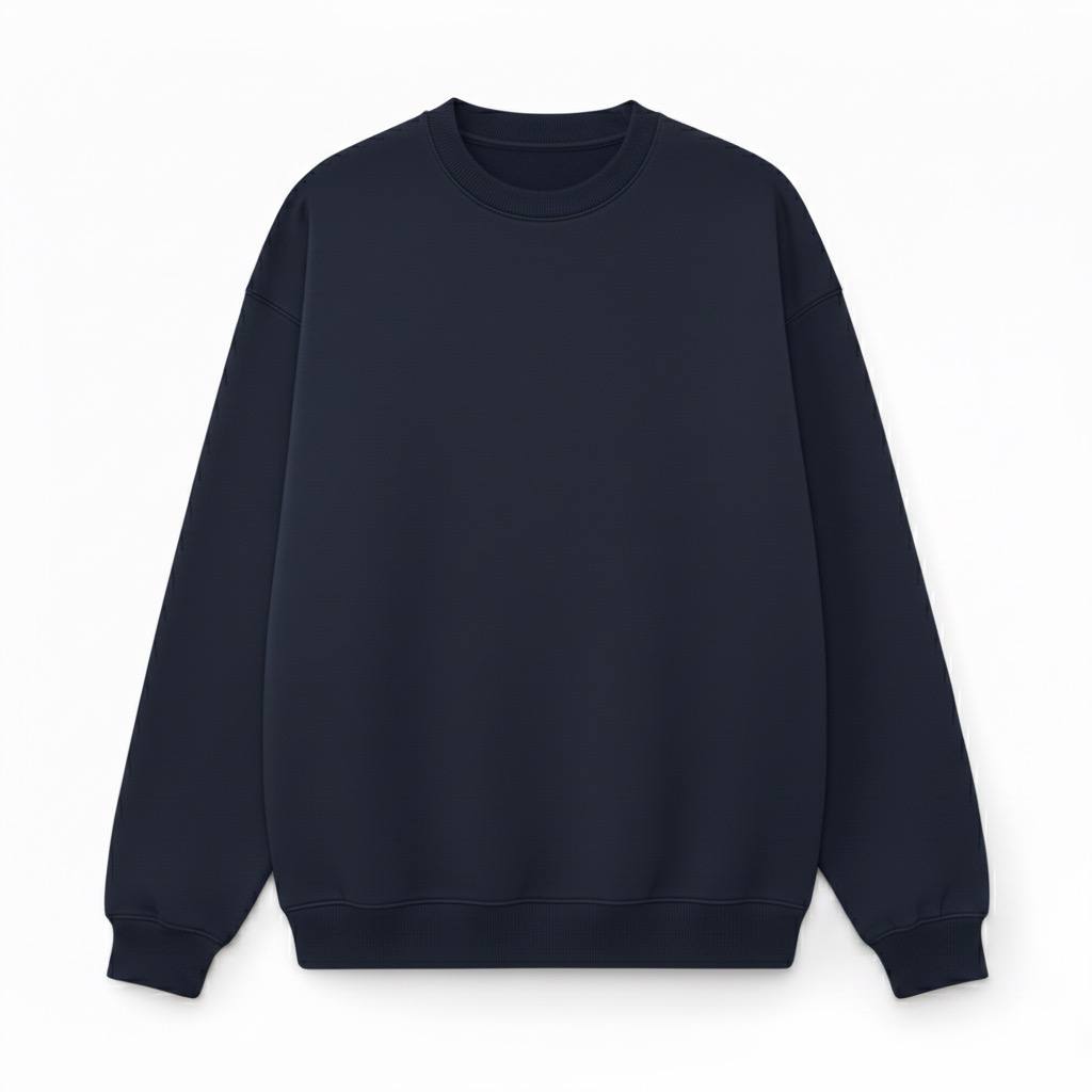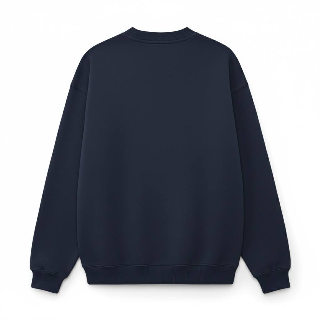 Navy Blue oversized sweatshirt made from high-quality Milton mixed fabric. The outer layer is 100% cotton, providing a soft and smooth texture, while the inner layer is a blend of 75% cotton and 25% polyester for added warmth and durability. Designed with a relaxed, oversized fit for ultimate comfort and a modern casual look.